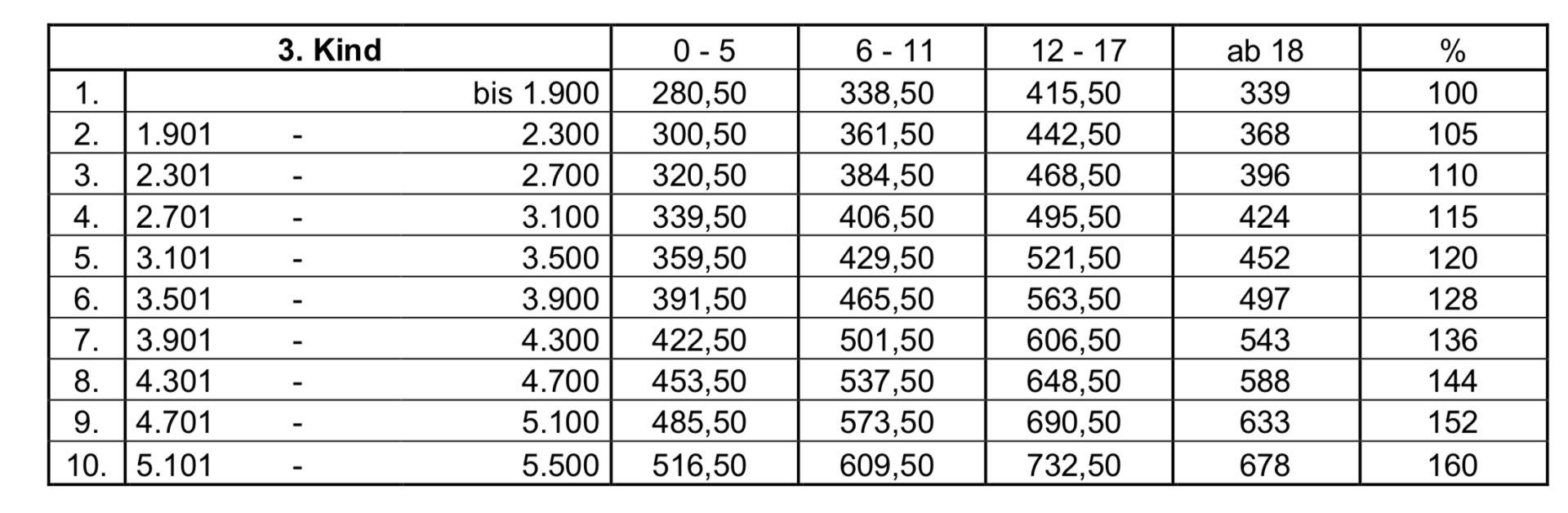 - der Altersstufe 6-11 auf 451 Euro (27 Euro mehr)