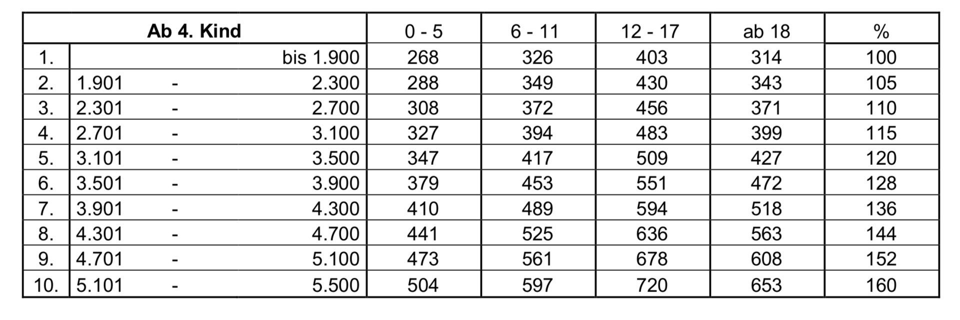 - der Altersstufe 0-5 auf 393 Euro (24 Euro mehr)